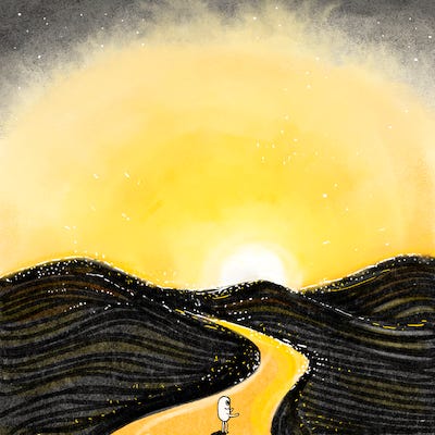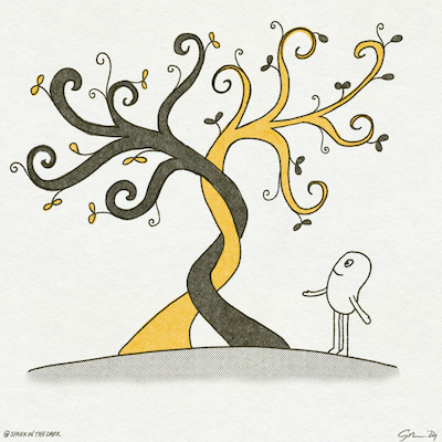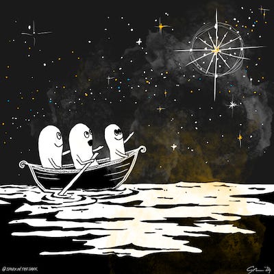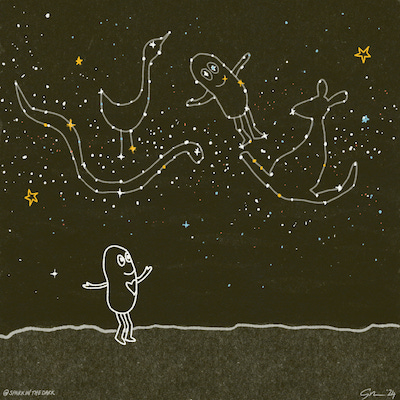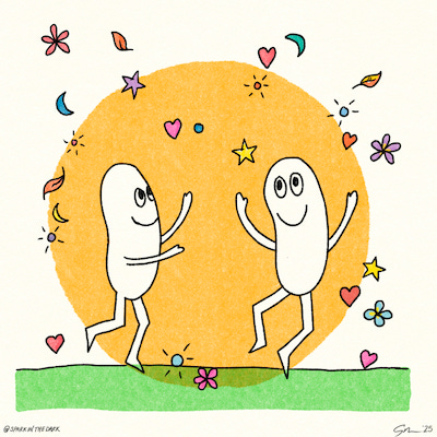 *Drawing Li’l Bean helped me navigate out of a period of depression in 2023. A good friend 13, 595km away, helped, too, through a ritual of swapping daily glimmers via text.