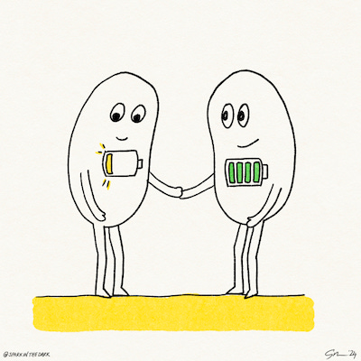 I’d like to share this practice with you and invite you to reflect on your glimmers for the day when you read this. Think of Li’l Bean as a reminder to notice the glimmers and sparks in your life. We’d love it if you would like to share your glimmers in the comments or by hitting reply (if you don’t like sharing publicly).