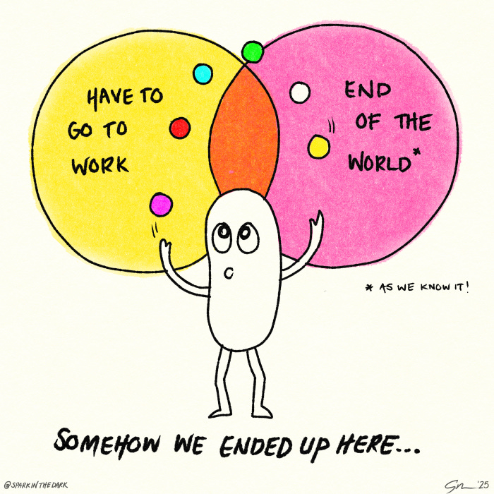 *Drawing Li’l Bean helped me navigate out of a period of depression in 2023. A good friend 13, 595km away, helped, too, through a ritual of swapping daily glimmers via text.